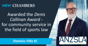 Congratulations to Dominic Villa SC who was recently awarded the Denis Callinan Award “for community service in the field of sports law” at the Australian + New Zealand Sports Law Association (ANZSLA) annual conference in Brisbane.